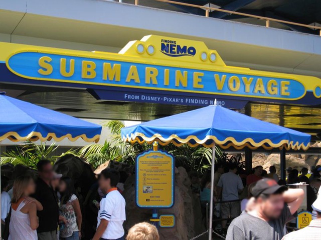 Guests using the alternate experience enter through an entrance near the monorail entrance. With the fairly high-capacity and fairly low-demand for it, they found that they only had to wait for the next available showing. After helping them to get situated in the line for the alternate experience and arranging where to meet later, my father and I were prepared to head around to get into the hour-long queue for the regular ride. Much to our surprise, the ride attendants instead escorted us to a nearby waiting area and told us that we would be put onto the next submarine. That means that we boarded the regular ride about the same time that the others entered the theater, thus minimizing the amount of time our family was separated.