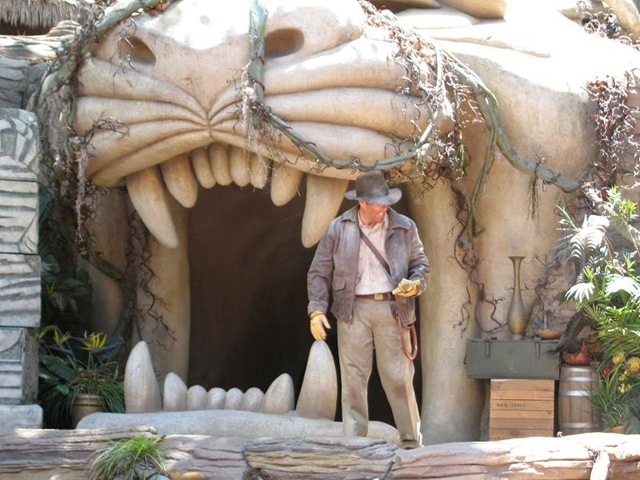 Pretty much everything about the show points to it being a pretty obvious rush job to quickly take advantage of the renewed interest in the character (which is, of course, already featured in a major E-ticket attraction in Adventureland). All of the hosts and hostesses at the theater were still wearing the middle-eastern style costumes that were designed for the Aladdin show. The set on the stage is still largely the same, even including the large walk-through tiger’s head designed after Aladdin’s Cave-of-Wonders. The globe-trotting nature of the Indiana Jones character does make it pretty easy to adapt a show to just about any setting, but it still is a pretty obvious indication that not too much effort or expense went into this show.