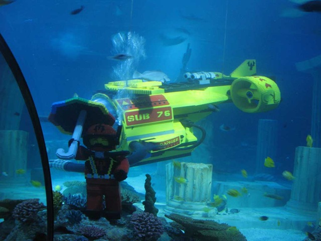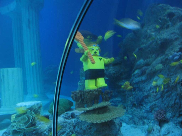 While the Sea-Life chain is technically separate from Legoland, the design of this location does wisely acknowledge that it is part of the overall Legoland complex by including Lego theming in a number of the exhibits. Several of the aquarium tanks included fairly-elaborate, and generally quite amusing, Lego structures. Two particularly fantasy-oriented sections, areas themed to Atlantis and to a shipwreck, are the primary location for the Legos. Continuing the interactive nature much of the attraction, a couple of these include buttons that kids (or adults…) can press to activate animation and/or sound effects.