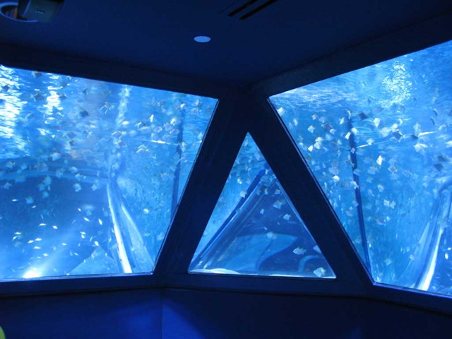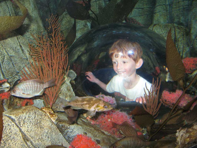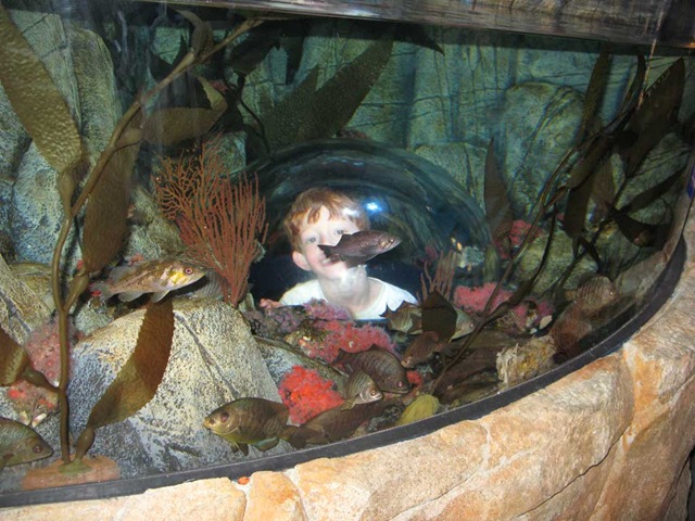 The biggest strength of the aquarium is the very kid-accessible designs to the exhibits. The majority of the tanks have viewing windows at low heights making it very easy for kids to see without having to be lifted. These viewing windows are also typically large enough in size or quantity to accommodate multiple children without a lot of waiting. One feature that was especially popular with our son was the inclusion in a few tanks of glass domes that kids could climb into and be basically surrounded by the fish. Of course, these also provide a great photo opportunity for parents as well.