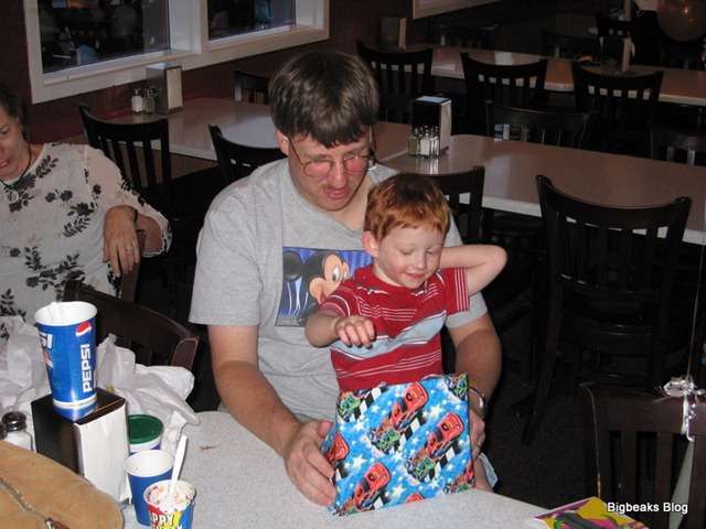 The Farrell’s party was actually the second of two birthday parties that we had for Andy that year. My wife’s parents visited a couple weeks before and we had a pre-birthday party where we served another ice cream cake and let him open his presents from that set of grandparents.