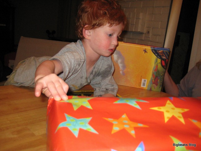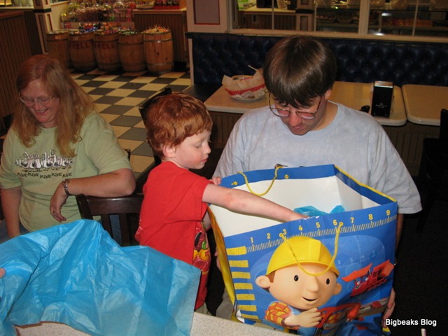 He had received most of his major gifts during the party at Farrell’s, but we gave him a toy fire truck that I had found at a really good sale price between the two parties and he also had gifts from his grandparents to open.