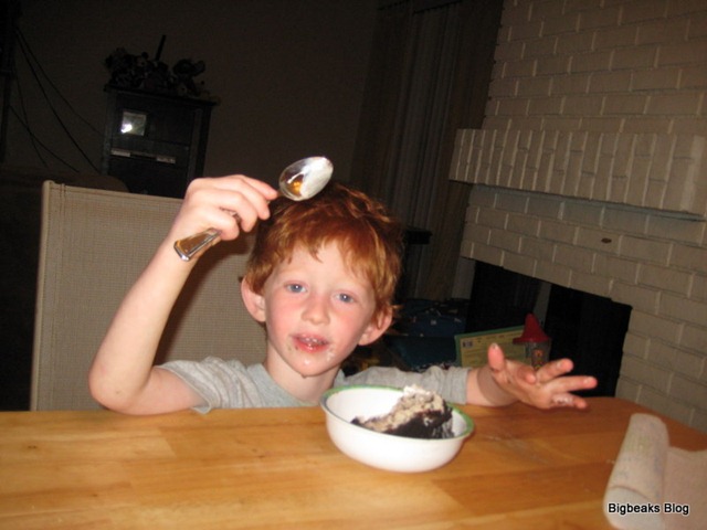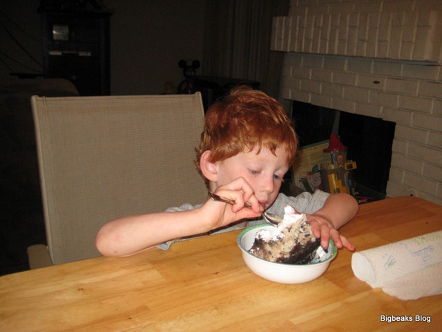 Finally, we did also do the now-traditional cake and gift-opening at home on his actual birthday. Once again, the cake was an ice cream cake.