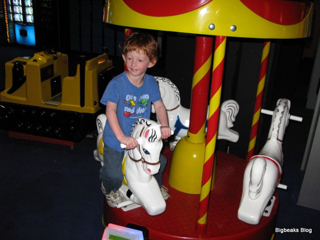 As with the previous year’s visit, we included some play time in the game area at Mountasia. Once again, Andy used the majority of the game/ride credits that we got for him to ride on the little merry-go-round. During this visit, he did also give skee-ball a try for the first time, although I really was doing most of the work.