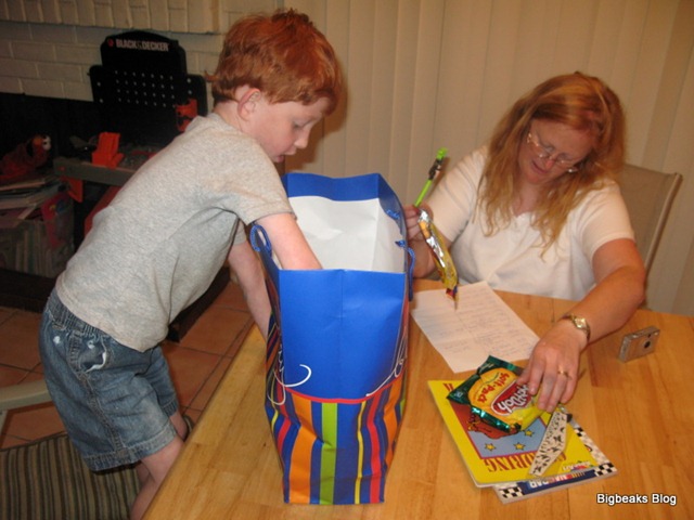 After the party, we went home and let him open his gifts. He ended up with a pretty large selection of items thanks to the reasonably large turnout at the birthday party. Fortunately, so far he doesn’t seem to be expecting that every year. I think we did a good job of explaining to him that the 5th birthday was kind of a special one.