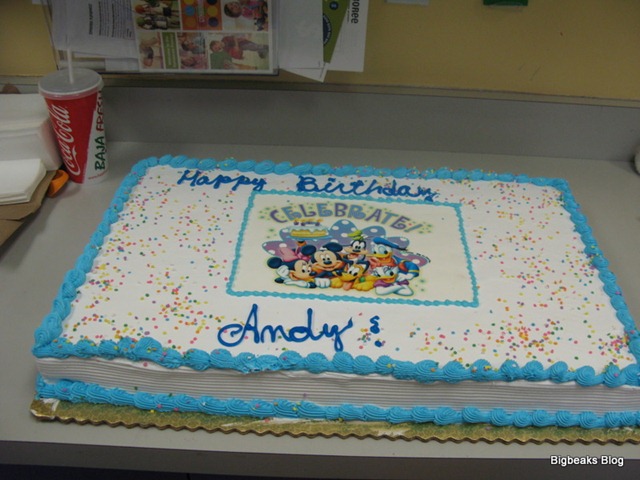The package we bought did not include refreshments, so we ordered a sheet cake from a local supermarket and also bought various chips and juice for the event. We were able to get a cake that was decorated with a picture of Mickey Mouse and his friends, which was a very good fit for our son’s interests. We also were able to find Mickey Mouse paper plates, napkins, and cups to go with it.
